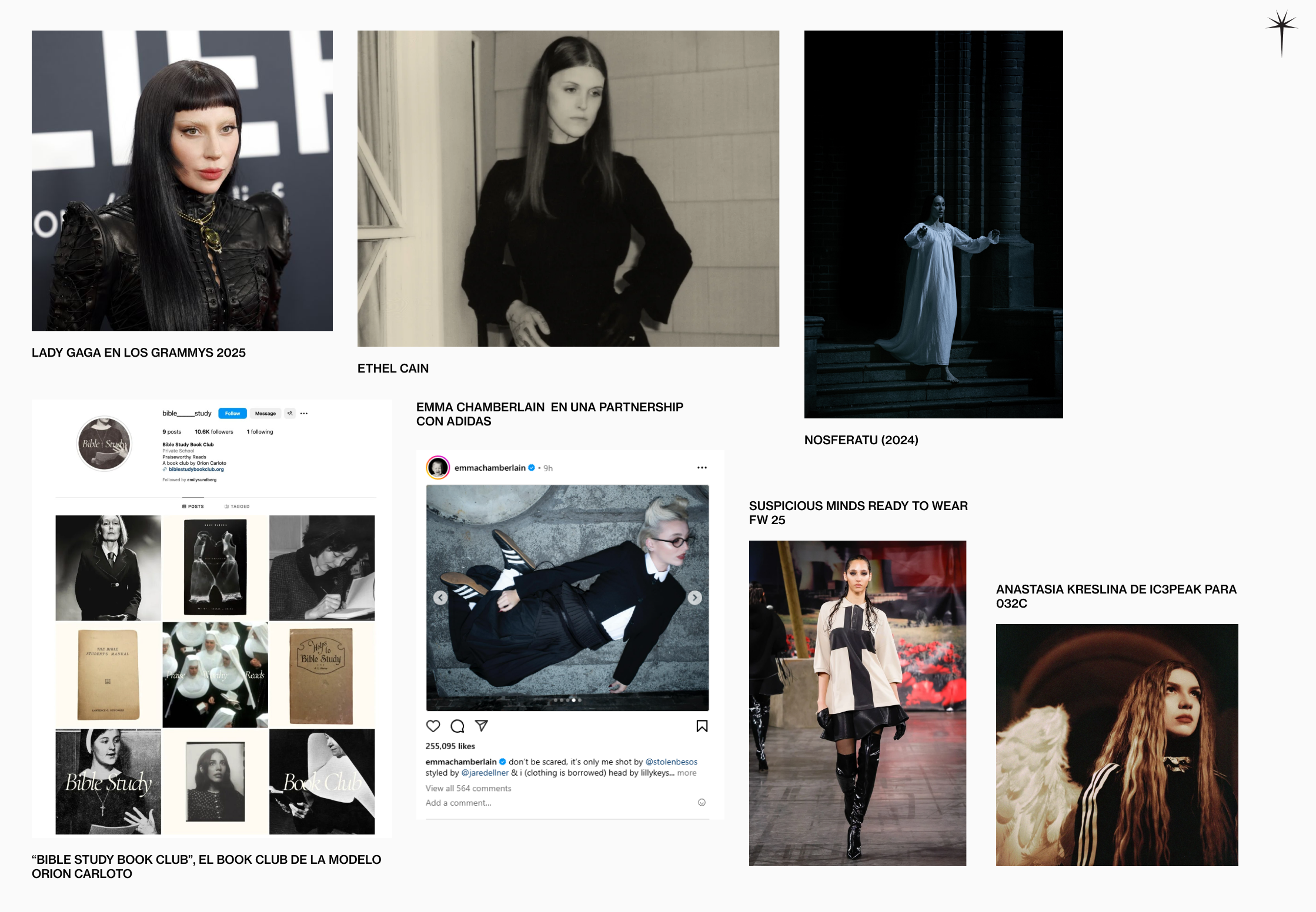 Hoy, se suma una estética que podría llegar a tomar cierta dimensión proto-espiritual. Reafirmando mi “caso bullish para el cine”, Nosferatu marca un cambio en el clima cultural: Es el momento de los vampiros y los motifs religiosos - es momento de la mujer maldita como musa. ¿Podría esto darle profundidad artística al revival goth que viene pisando fuerte entre los zoomers desde hace unos años?