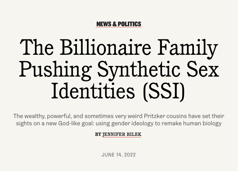 Si un editor de Breitbart pitcheara esto, le pedirían por favor que baje cuatro tonos. Acusar a “una familia billonaria” apellidada Pritzker de que querer “usar ideología de género para rehacer la biología” es amarillista y políticamente peligroso.