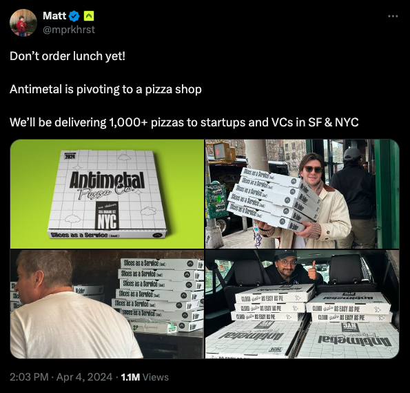 No, lo local no tiene por qué ser mucho más caro que otras opciones - en especial si tenés una estrategia relativamente responsable. Algunas activaciones a escala local, bien diseñadas, pueden tener un ROI muchísimo más alto que la publicidad virtual indiscriminada, sin un anclaje local. ¿No me crees? Antimetal, una startup fundada en San Francisco, gastó $15k en pizzas, que envió a prospectos locales. La iniciativa tuvo un ROI de $1M.