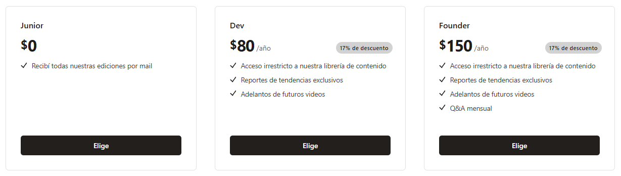 Tenemos tres tiers de suscripción: