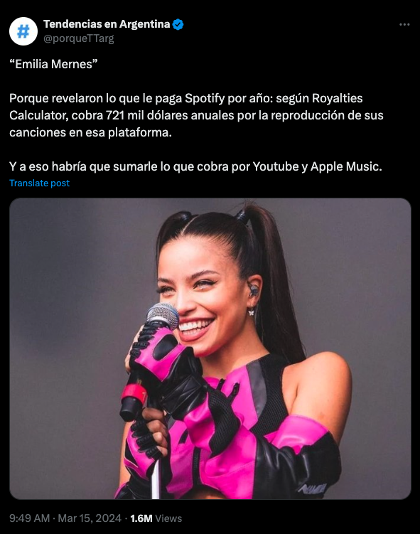Recuerdo cuando a Emilia Mernes le preguntaron sobre la situación de los artistas en Argentina, y comenzó a buscar con la mirada a su publicista, desesperada como un nene que se perdió en un supermercado. Su música vende empoderamiento femenino, su realidad se parece más a la de una idol de k-pop. No podemos lidiar con el potencial backlash (aunque sea marginal), de que Emilia tenga una opinión. Su valor de mercado depende de ser una blank slate a la que podamos arrojarle más o menos lo que venga.