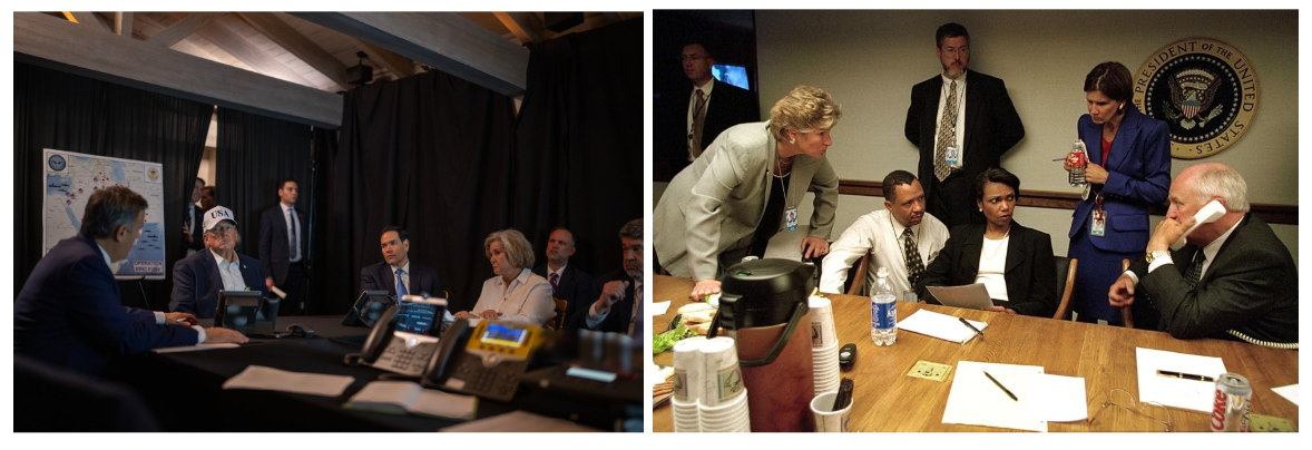 El look, según reporta La Derecha Diario, se explica por la apretada agenda del presidente norteamericano, quien luego de ser anfitrión de un mitin en su complejo residencial en Mar-a-Lago, se retiró para atender la operación militar que descabezó al régimen chiíta.