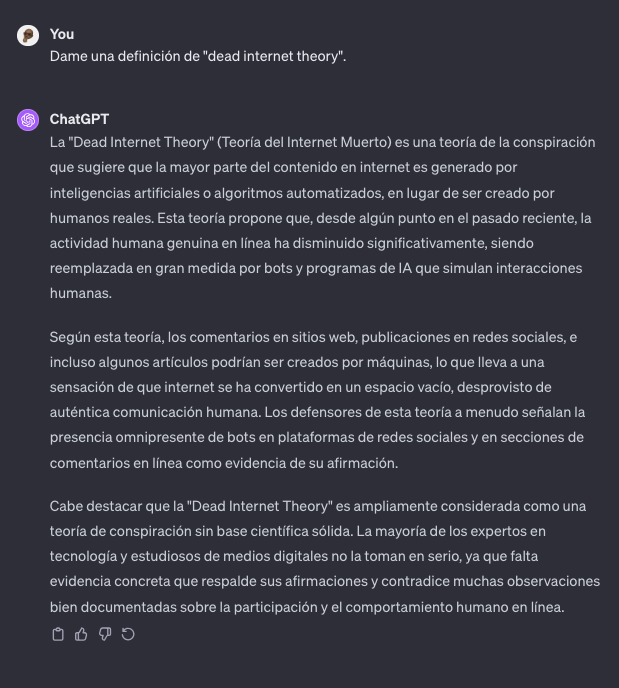 Habrá quien me diga "Tonto, estúpido - las plataformas no van a intentar limitar la actividad de bots. ¡Les conviene! Más contenido generado por IA es más contenido donde mostrar anuncios." Pero disiento.
