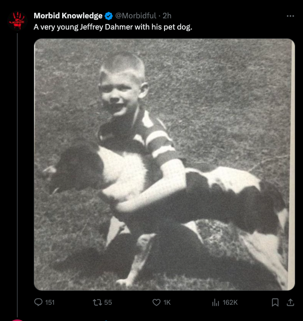 La cuenta Morbid Knowledge (que tiene más de 1.8M de seguidores) publica una foto de Jeffrey Dahmer de niño: