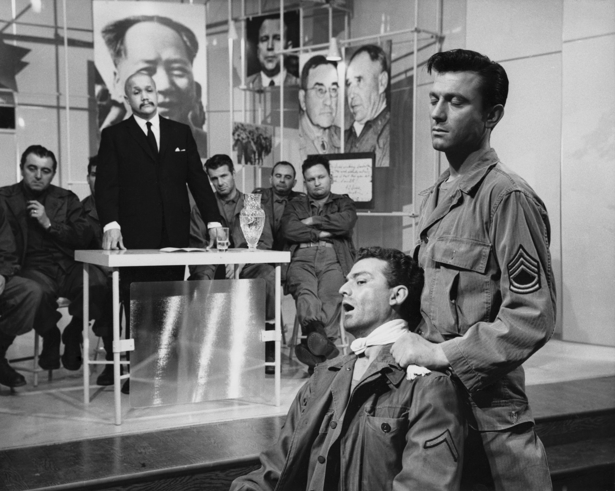 En The Manchurian Candidate (1962, Dir. John Frankenheimer), el soldado estadounidense Raymond Shaw es tomado prisionero durante la guerra de Corea (control físico) y sometido a un proceso de lavado de cerebro (condicionamiento). El background familiar del soldado (una pareja de políticos conservadores) es explotado por sus captores para convertirlo en pieza activa de un plan magnicida que terminaría con la implantación de un presidente estadounidense de corte autoritario y afín al comunismo.